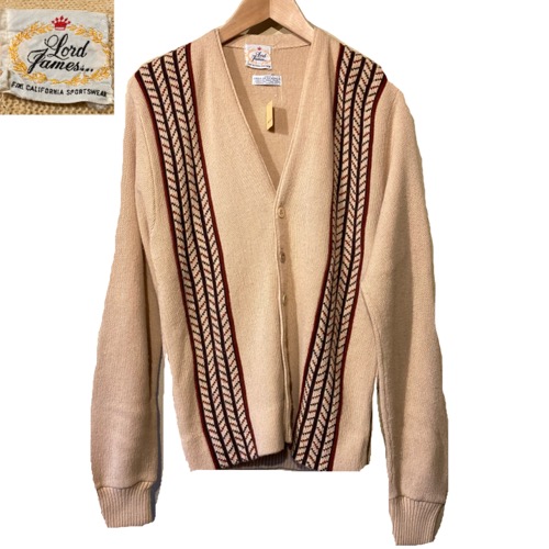 USED 60's Lord James ロードジェイムス 柄入り アクリル ニットカーディガン セーター BEI / 251112