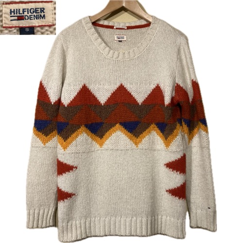 USED 00's TOMMY DENIM トミーデニム ネイティヴ柄 ミックスニット セーター WHT / 251112